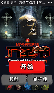 進(jìn)入游戲——開始注冊——點(diǎn)擊南瓜燈,贏取購物中心現(xiàn)金卡——限制時(shí)間內(nèi),點(diǎn)亮南瓜燈越多,排名越靠前——分享好友或者朋友圈——查看排行榜和規(guī)則