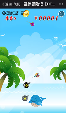 1、40秒內(nèi),左右移動小鯨魚接取天空掉落的棒棒糖和金幣;