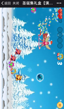 圣誕節(jié)微信助力游戲,游戲中圣誕老人飛行過程中,收集空中的禮盒,并且集合“圣”、“誕”、“快”、“樂”四個(gè)水晶球會(huì)讓圣誕老人能量加倍。助力游戲起到增加粉絲量的效果。
