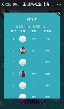 3、最終按照自己的最高分和好友助力的成績(jī)累加,作為總得分進(jìn)行排名。