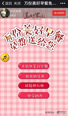 3、新用戶需關(guān)注微信公眾號方可參與。最終按照自己的最高分和好友助力及分享朋友圈的成績累加,作為總得分進(jìn)行排名。
