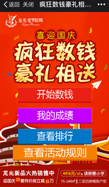月末獎金、年末獎金、春節(jié)壓歲錢,誰不想數(shù)錢數(shù)到手抽筋。微信游戲迎合用戶的心理,將數(shù)錢游戲與商家品牌結合,在游戲中記住了品牌價值,真正一款花小錢,擴大朋友圈粉絲推廣的小游戲。