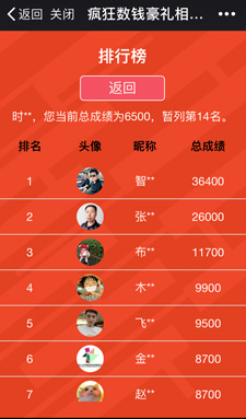 3、營銷點:分享好友一起玩,通過排行榜發(fā)放獎品;