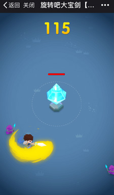 進入游戲——旋轉(zhuǎn)吧大寶劍——手指拖動小人,守衛(wèi)水晶——限制時間內(nèi),得分越高,排名越靠前——分享好友助力一起玩——查看排行榜和規(guī)則