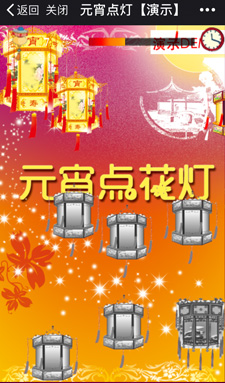微信營(yíng)銷游戲——點(diǎn)亮燈籠模版,特別適合中國(guó)傳統(tǒng)節(jié)日的一種玩法,如果滿足您的需求,可以直接租用模版,如果有其它訂制需求,歡迎提交需求給我們,進(jìn)行進(jìn)一步溝通和開發(fā)。
