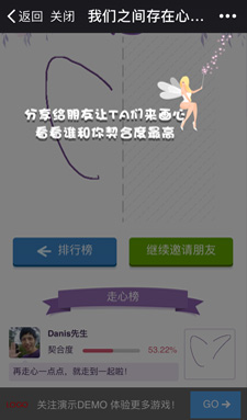 畫心助力游戲在情人節(jié)切實(shí)起到了吸粉和推廣微信公眾號的作用,如果滿足您的需求,可以直接租用模版,如果有其它訂制需求,歡迎提交需求給我們,進(jìn)行進(jìn)一步溝通和開發(fā)。