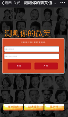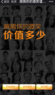 游戲創(chuàng)意點:拍照上傳后可測試微笑值。