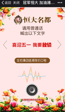 1、選擇加油吶喊的口號,長按喇叭按鈕用標準普通話大聲喊出;
