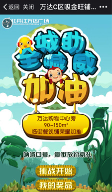 微信營銷游戲——喊口號贏大獎是經(jīng)典款微信公眾號推廣游戲,可以直接租用模版,如果有其它訂制需求,歡迎提交需求給我們,進行進一步溝通和開發(fā)。