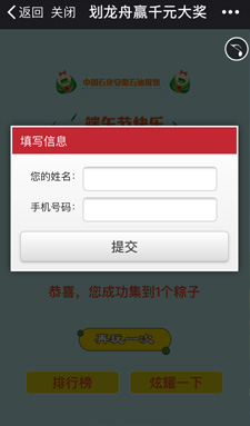 端午節(jié)微信營銷游戲很多款,急速龍舟是經(jīng)典耐玩的一款微信活動(dòng),可以直接租用模版,如果有其它訂制需求,歡迎提交需求給我們,進(jìn)行進(jìn)一步溝通和開發(fā)。