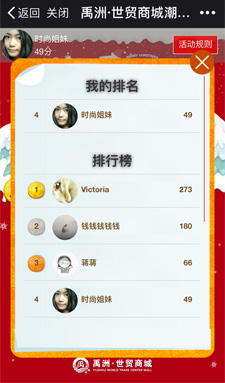 3、新用戶需關(guān)注微信公眾號方可參與。最終按照自己的最高分和好友助力及分享朋友圈的成績累加,作為總得分進(jìn)行排名。