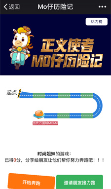 酷跑游戲受追捧,配以酷炫的音樂(lè),植入企業(yè)品牌。另一方面其簡(jiǎn)單好玩,容易讓用戶獲得成就感,助力方式使得互動(dòng)性強(qiáng),廣泛傳播朋友圈?;顒?dòng)時(shí)間2天,頁(yè)面訪問(wèn)量3萬(wàn)多人,獨(dú)立訪客數(shù)達(dá)到3千人。