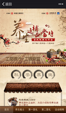 進(jìn)入游戲——養(yǎng)生貼士——第一重禮——完成問卷調(diào)查——第二重禮——參與大轉(zhuǎn)盤抽獎(jiǎng)——查看規(guī)則