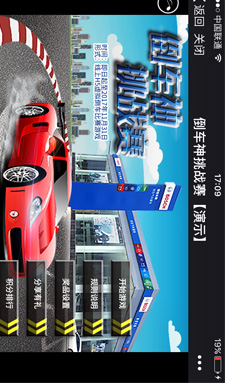 微信公眾號(hào)中闖關(guān)游戲比較有挑戰(zhàn)點(diǎn),倒車神挑戰(zhàn)賽,用時(shí)越短,吃金幣越多,碰撞次數(shù)越少,分?jǐn)?shù)越高,根據(jù)排行榜發(fā)獎(jiǎng)品。