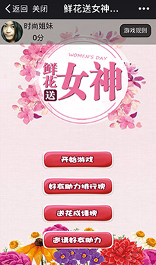 ? ? ? ?女神節(jié)送鮮花,針對(duì)女神節(jié)開發(fā)的微信營(yíng)銷游戲。游戲中點(diǎn)擊屏幕下方郁金香,并且向上滑動(dòng),往轉(zhuǎn)動(dòng)的花環(huán)種上鮮花,鮮花之間不能碰觸。邀請(qǐng)好友助力,收獲豪禮。游戲推廣效果顯著,以小成本,增長(zhǎng)了大數(shù)量的粉絲。