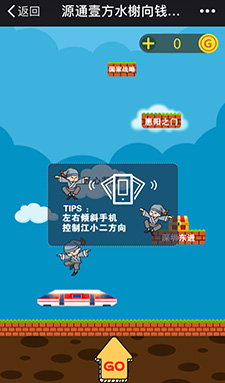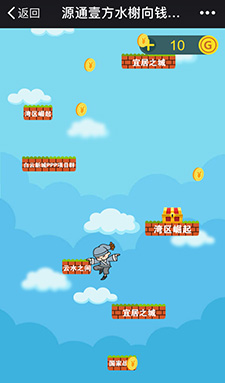 搖晃手機(jī)控制謝小二的方向,每獲得一枚金幣計(jì)10分,碰到地鐵將加速向上。這是一款重力感應(yīng)的向上跳一跳活動(dòng),達(dá)到分?jǐn)?shù)可領(lǐng)取紅包?;顒?dòng)推出后,實(shí)現(xiàn)幾千幾萬(wàn)粉絲參與,營(yíng)銷效果非常顯著。