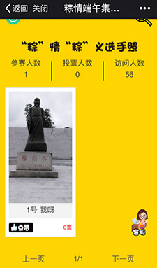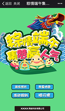 投票集贊游戲幾乎是每個節(jié)日營銷必備利器,粉絲參與度極高,上傳美照,分享好友進(jìn)行投票,根據(jù)排名可以得到豐厚獎品。游戲界面簡約,有濃濃的端午節(jié)元素,推出后備受歡迎。