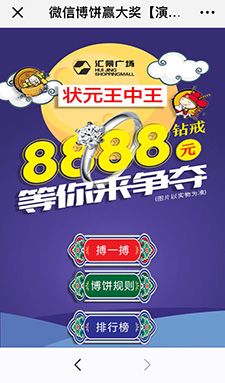 微信營(yíng)銷(xiāo)游戲——中秋博餅基礎(chǔ)版 是經(jīng)典款微信公眾號(hào)推廣游戲,可以直接租用模版,如果有其它訂制需求,歡迎提交需求給我們,進(jìn)行進(jìn)一步溝通和開(kāi)發(fā)。