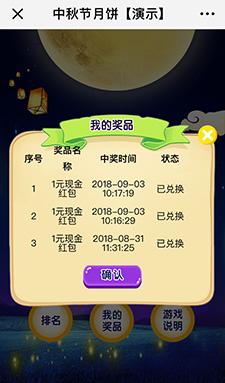 進入游戲——開始游戲——接月餅——達到分數(shù)可抽獎——查看活動規(guī)則和我的獎品