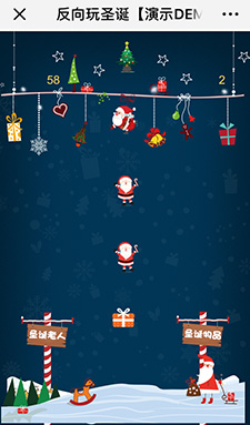 ? ? ? ? 反向玩圣誕游戲源于逆向思維的玩法,借助圣誕歡快的氛圍進行營銷活動,將圣誕樹、圣誕禮物、圣誕老人等元素融入游戲情節(jié),是用戶喜歡上游戲并且分享好友一起玩增加分數(shù),從而達到宣傳增粉的目的?;顒訒r間20天,頁面訪問量達到上萬,獨立用戶達到上萬。