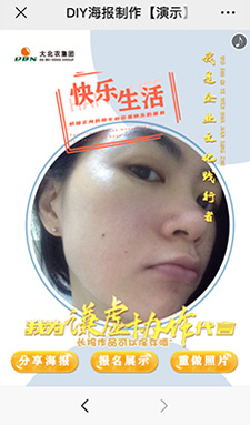 選擇模版和掛件,上傳照片,點擊生成二維碼海報,進行編輯祝福語,并提交報名信息?;顒舆€可轉(zhuǎn)發(fā)分享好友一起玩。充分展示了活動主題和內(nèi)容,樂趣而生動的一款海報diy微信營銷游戲。
