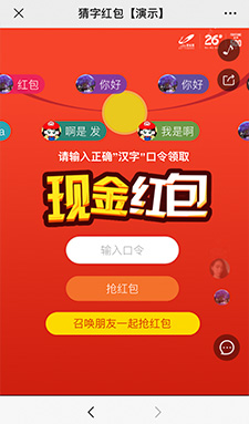 看圖猜字抽紅包,有彈幕機(jī)制,實(shí)現(xiàn)廣泛傳播的目的。