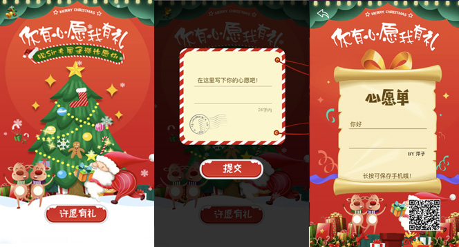 圣誕寫下愿望,分享好友可獲得抽獎機會。活動推出,實現(xiàn)幾千幾萬粉絲參與,營銷效果非常顯著。