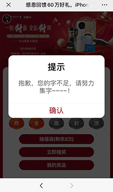 1、集齊x字可獲得1次抽獎(jiǎng)機(jī)會(huì);