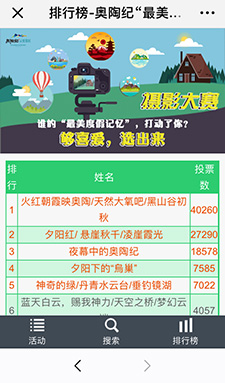 投票集贊游戲幾乎是每個節(jié)日營銷必備利器,粉絲參與度極高,上傳美照,分享好友進(jìn)行投票,根據(jù)排名可以得到豐厚獎品。游戲界面簡約,有濃濃的節(jié)日元素,推出后備受歡迎。