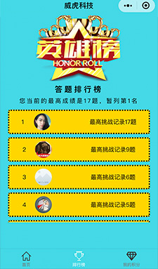 3、每個用戶活動期間可以無限次數(shù)答題,系統(tǒng)會自動取每天的最高分累加,形成最終成績進(jìn)入排行榜