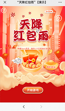 游戲創(chuàng)意點(diǎn):紅包雨活動適合各個節(jié)慶時間推廣,增粉,玩法更樂趣。