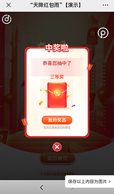 1、點(diǎn)擊掉落的紅包參與抽獎,每次可選擇其中1個紅包,活動期間每人每天可共選擇XX個紅包,有機(jī)會隨機(jī)獲贈價值不等的獎品;