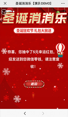 微信愛消除游戲是經(jīng)典的小游戲,更便于植入品牌元素,界面小圖標都可以替換。達到分數(shù)抽獎實物或紅包方式使得互動性強,廣泛傳播朋友圈。
