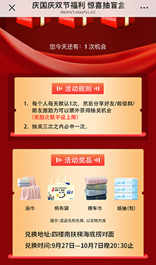 2、參與用戶可每天默認1次進行拆禮盒并分享好友助力