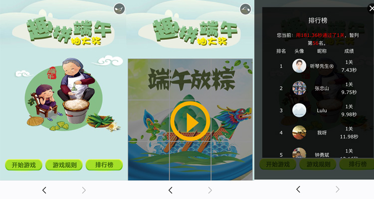 兒童節(jié)的活動有抓娃娃、酷跑抽獎、貪食蛇等,端午節(jié)的活動有賽龍舟、抓粽子、拼圖抽獎、刮刮卡等。很多商家通過以上創(chuàng)意活動玩轉節(jié)日營銷。