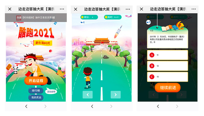 ? ? ? ?創(chuàng)意策劃:酷跑答題抽大獎(jiǎng)、獎(jiǎng)品為實(shí)物或紅包
