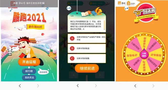 3、答對x題,就可以參與大轉(zhuǎn)盤抽獎,獲得實(shí)物獎品或者紅包
