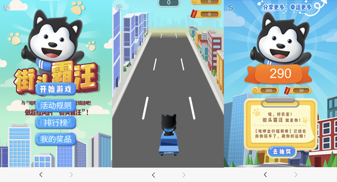 碰到障礙物游戲結(jié)束,達(dá)到一定分?jǐn)?shù)可抽獎