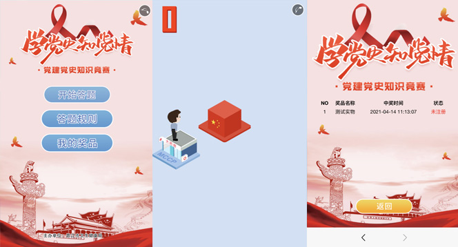 黨建知識答題,加上答題抽獎,達(dá)到分?jǐn)?shù)可抽獎