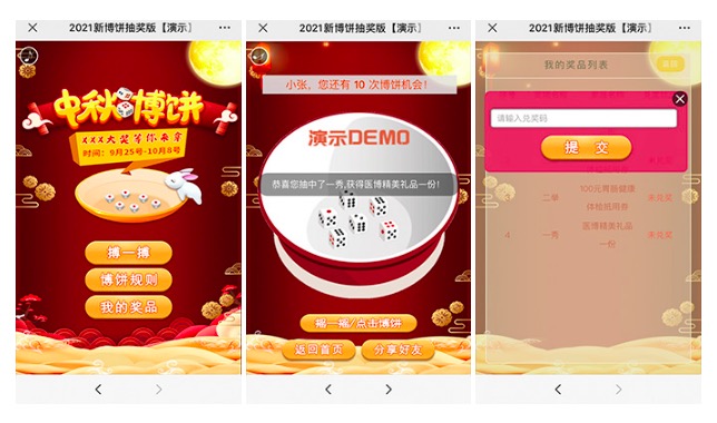 1、2021博餅新版:微信博餅抽獎(jiǎng)版