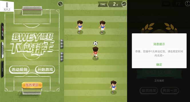 2、帶球得分,達(dá)到分?jǐn)?shù)可以抽獎(jiǎng)實(shí)物或紅包