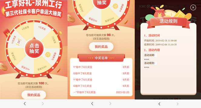 大轉(zhuǎn)盤抽獎,抽獎實物或紅包,節(jié)日促銷活動