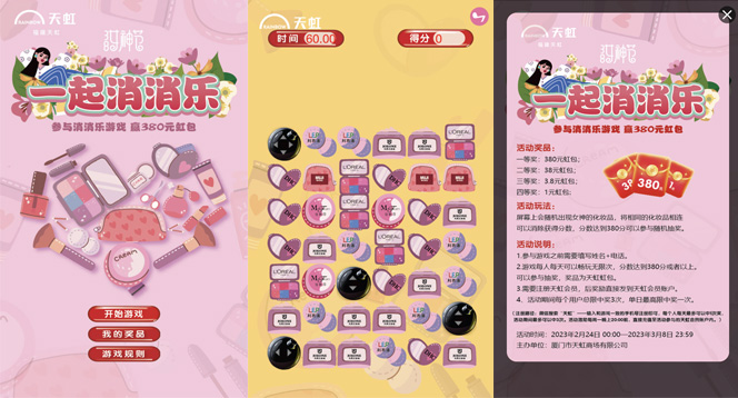 消消樂,達(dá)到分?jǐn)?shù)可抽獎實物或紅包