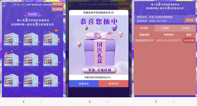 3、獎品為紅包或?qū)嵨?,線上核銷實物獎品