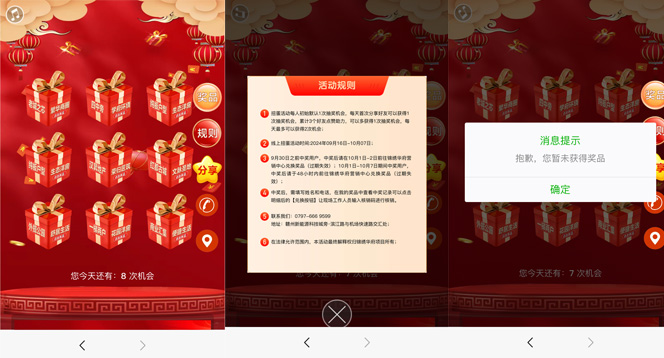3、活動期間每人最多x次抽獎機會,有一定中獎概率