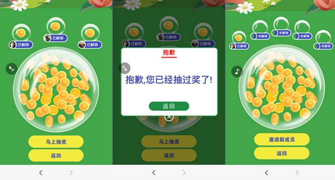 3、每天玩x次,每天首次分享朋友圈可獲得x次抽獎機會