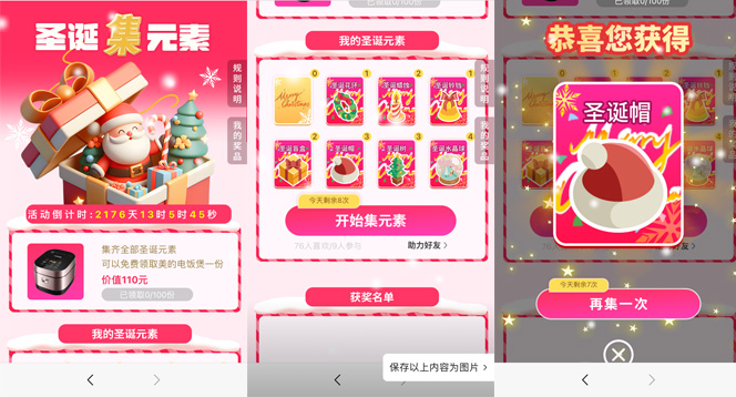 2、集齊9種圣誕元素圖卡即可領(lǐng)取獎(jiǎng)品