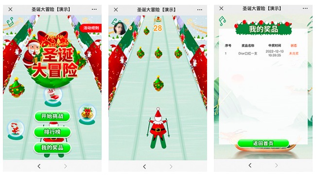 也為企業(yè)提供了一個(gè)宣傳品牌和用戶建立聯(lián)系的機(jī)會(huì)。例如,酷跑抽獎(jiǎng)游戲、集圣誕元素互動(dòng)或許愿海報(bào)互動(dòng)等,用戶通過(guò)掃描二維碼或搜索公眾號(hào)參與游戲,同時(shí)獎(jiǎng)品激勵(lì)機(jī)制,以激發(fā)用戶的參與熱情。