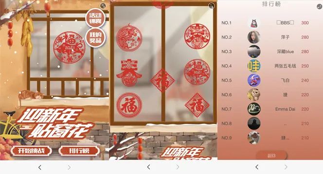 窗花拖到到正確位置,達(dá)到分?jǐn)?shù)可抽獎